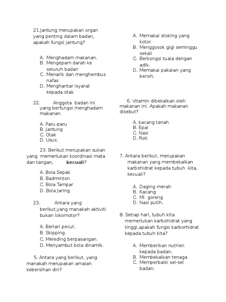 Koleksi kertas soalan pendidikan jasmani sekolah rendah. Pendidikan jasmani & pendidikan kesihatan tahun 5.doc. Ejercicio de pendidikan kesihatan kenali diri tahun 3.